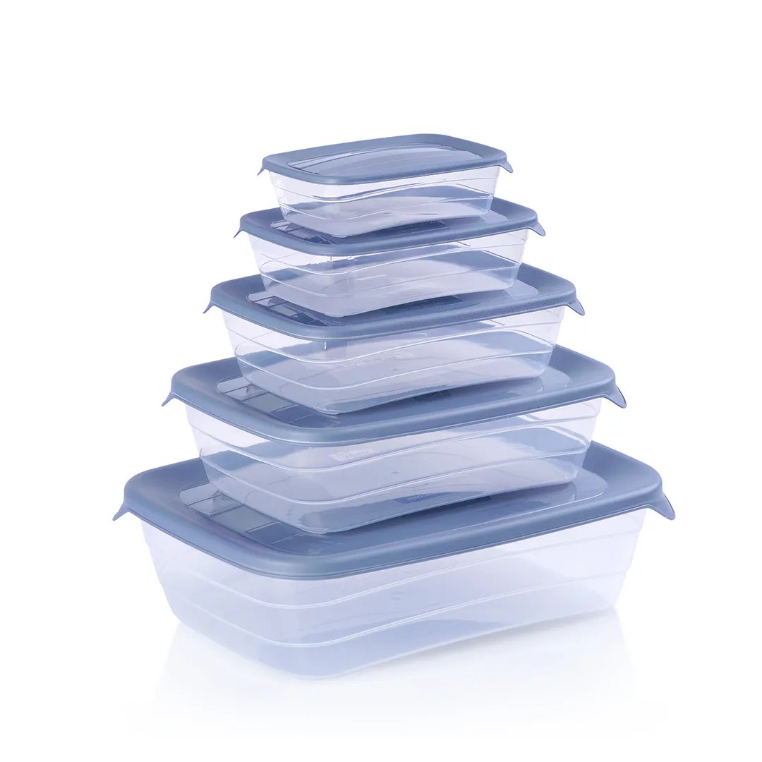 .مجموعة مكونة من 5 حاويات تخزين طعام بلاستيكية بأحجام مختلفة. تعد حاويات التخزين هذه مثالية لتخزين بقايا الطعام وإعداد الوجبات في لفريزر-